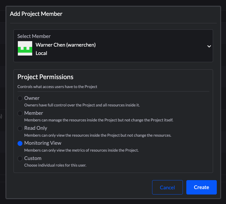 默认情况下,Cluster Member 和 Project Member 都无法查看 Workload 的 Metrics,需要给予一定的 Monitoring 权限才能查看。