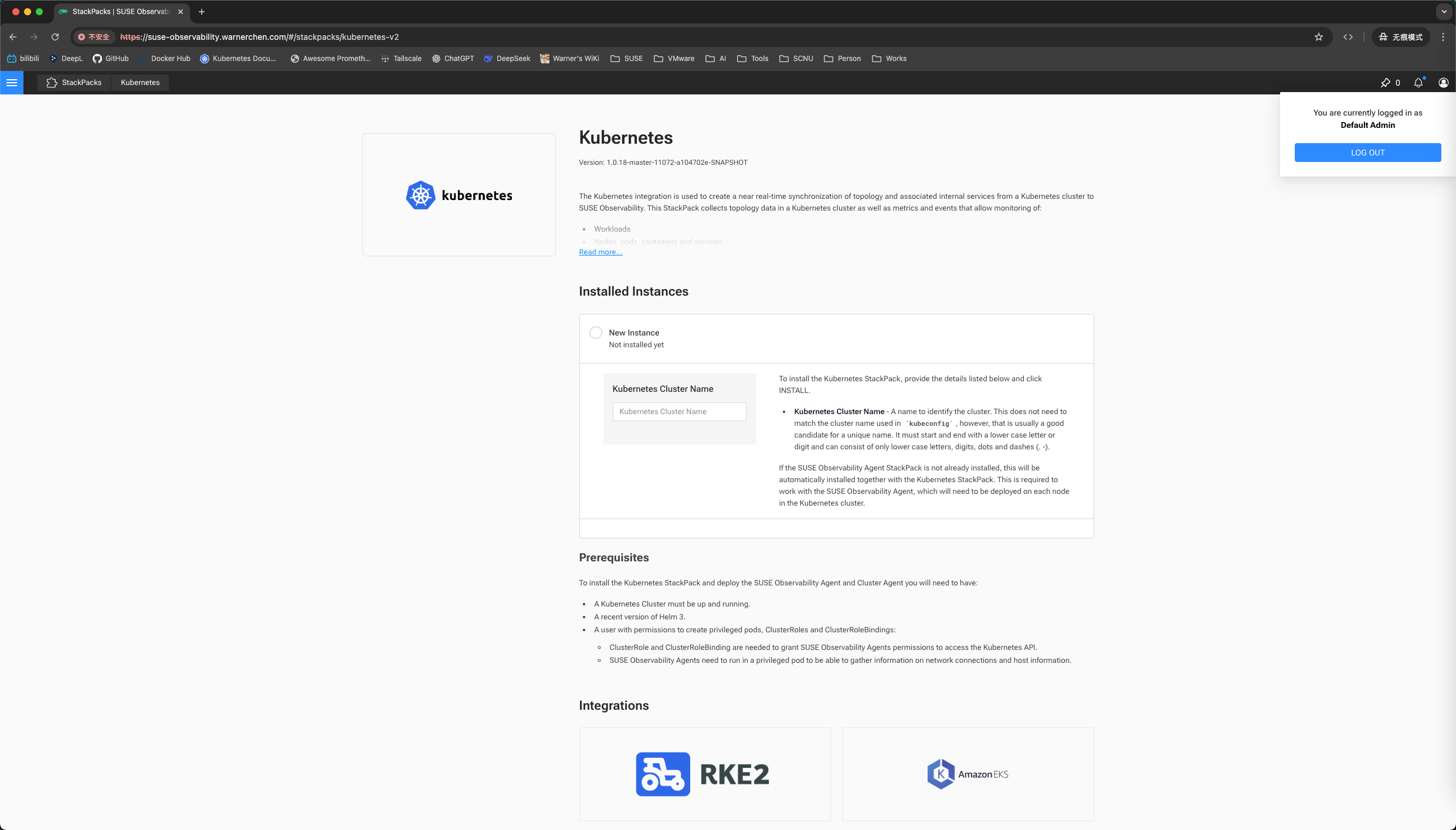 通过 Rancher local admin 登陆后,即可以 admin 角色访问 SUSE O11y: