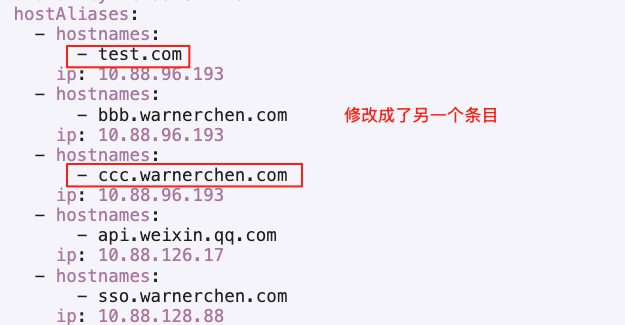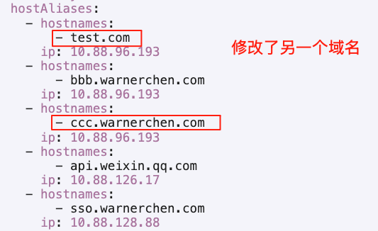 hostAliases配置未发生变化,或为按预期发生变化 - 最终结果与预期配置不一致