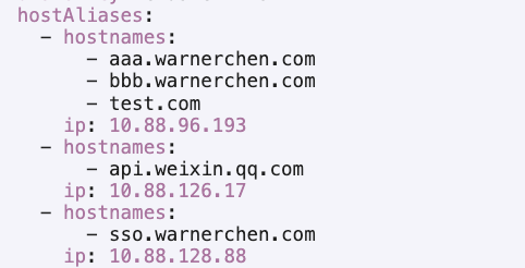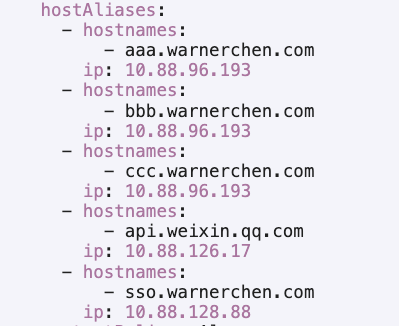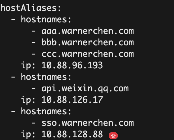 将相同 ip 对应的域名合并到同一个 hostAliases 条目中: