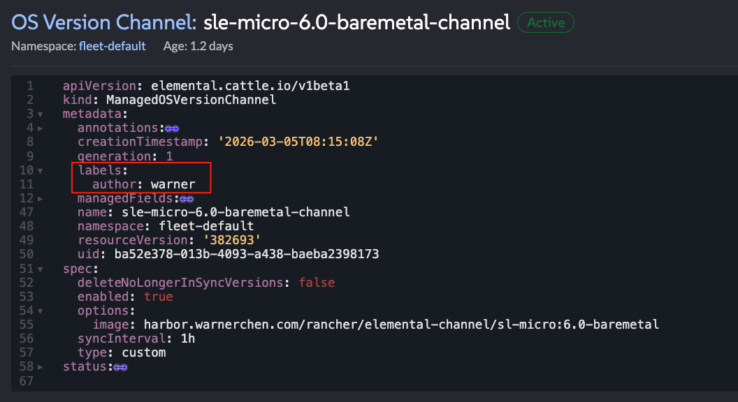 这是由于 Elemental Helm Chart 中的 Channel.yaml 包含相关校验逻辑,会检查手动创建的 Channel 是否包含 Label。如果未检测到 Label,就会触发报错。这也解释了为什么在删除 Channel 后能够正常完成升级。